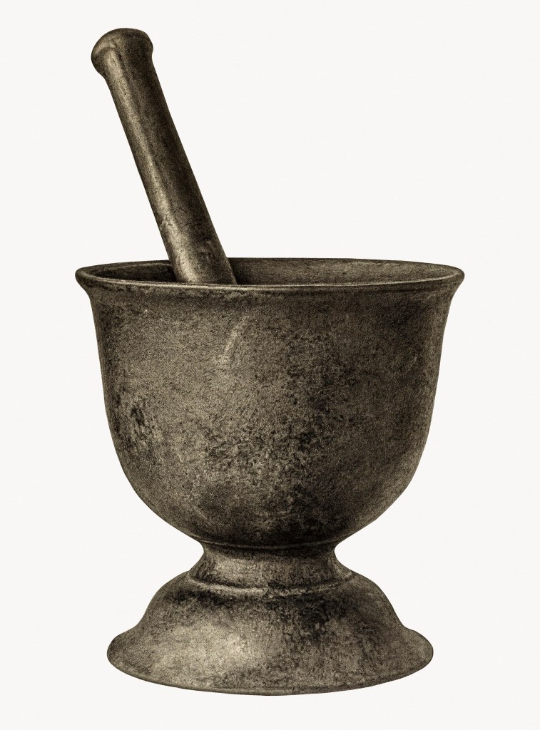 1. Grind down the eggshell and any other bigger ingredients to a fine powder, separately. I like to use a mortar and pestle for this.